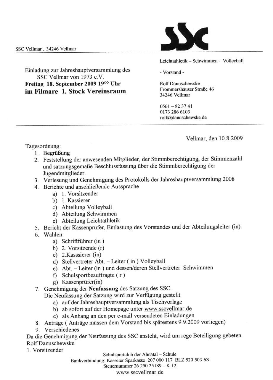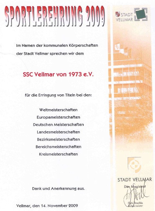 Siegfried Kopperschmidt für den Vereinsvorstand des SSC Vellmar