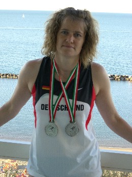 Carmen Krug W35 konnte sich beim Gewichtwurf (9,08kg) zur rechten Zeit erheblich verbessern - mit 11,32m steigerte sie ihre persönliche Bestleistung und konnte den 8. Platz bei der WM in Italien erreichen !