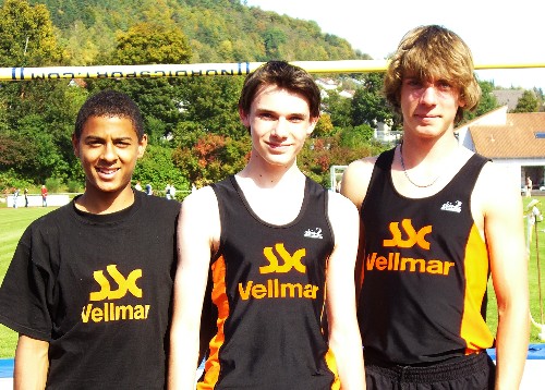 Da war noch der Weitsprung, den Tobias zum zweiten Mal im Wettkampf probte, - und wie. Mit 5,69 m katapultierte er sich mit verbesserungswürdiger Technik auf Rang eins der diesjährigen nordhessischen Bestenliste. Somit sind unsere A-Schüler M 14 Tobias Machal, Sven Eichel und Joshua Redmond die drei besten Weitspringer Nordhessens dieses Jahres und unter den Topp ten in Hessen.