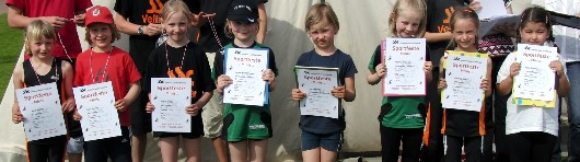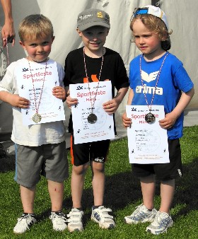 Am Ende der Wettkämpfe gab es eine Siegerehrung , wobei jedes Kind neben einer Urkunde auch ein Präsent erhielt. Die ersten Drei jedes Jahrganges wurden mit den heißbegehrten Gold-, Silber- und Bronzemedaillen ausgezeichnet. Viele glänzende Kinderaugen entschädigten für die geleisteten Arbeiten der Helfer/Kampfrichter.