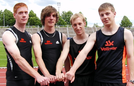Männer Nordhessenmeister 4x100m in 45,11s: Christian Rapp- Christopher Hödl- Arne Fröhlich- Hans-Christian Ohm