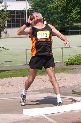 Klaus Moll (M80) befindet sich in hervorragender Verfassung. Am ersten Tag stellte er sich der bärenstarken Kugelkonkurrenz, zwischen den Plätzen 2 und 5 lagen nur wenige cm. Mit 11,17m war Klaus als 5. nicht sonderlich zufrieden, zumal er wenige Tage vorher mit 11,88 einen neuen Hessischen Rekord aufgestellt hatte. Die lange Anreise mit dem Pkw am Wettkampftag war nicht leistungsfördernd, zumal man nicht mehr 25 Jahre alt ist. Trotzdem sind 11,17m immer noch eine Klasseleistung. Am nächsten Tag dann nach einer erholsamen Nacht im nahe gelegenen Hotel der Diskuswurf. Alle Teilnehmer blieben etwas unter Wert, nur der bullige Sieger, bereits 11mal Europameister und mehrmaliger Weltmeister, überwarf die begehrte 30m Marke knapp, die Klaus als Vizemeister mit 29,35m knapp verfehlte. Wieder war Klaus mit seinen Würfen nicht ganz zufrieden, denn er ist für über 32m gut. Letztlich aber dann doch Freude über eine hervorragende Platzierung für den Vellmarer Dauerbrenner.
