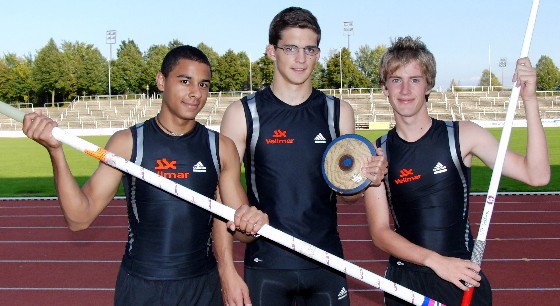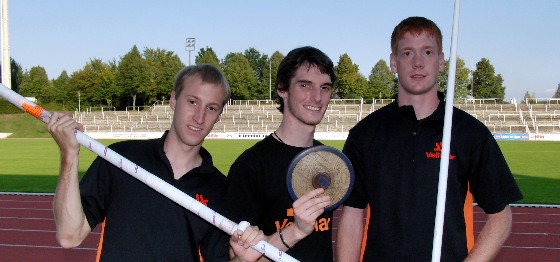 Arne Fröhlich, Christian Rapp und Christian Seeland beim Zehnkampf an, der erste Tag des Zehnkampfes ist nicht der "internationale" Fünfkampf, weil bei diesem die Disziplinen nicht identisch sind. Weder Arne noch die beiden Christians sind wirklich Mehrkämpfer, haben sich aber überwunden und Kampfgeist bewiesen! Jetzt sind die Drei mit der Mannschaft die Nr. 1 in Nordhessen !