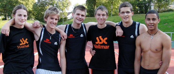 Durch den Ausfall eines hessischen Hochspringers wurde Sven direkt nach dem Dreisprung zum Hochsprung "eingeladen"– mit dem Ziel, gegen die Spezialisten einen Punkt für Hessen einzufahren. Mit 5 Schritten Anlauf, müde von dem belastenden Dreisprung, überwand Sven 1,75m und stellte eine persönliche Bestleistung auf. Fast hätte er auch noch 1,80m geschafft. In der zweiten Staffel, die sicherheitshalber ins Rennen geschickt wurde, lief Joshua auf Platz 2 und übergab den Stab an Sven. Da die erste Staffel patzte und den Stab beim letzten Wechsel fallen ließen, kamen die Vellmarer mit ihrem Staffelteam in die Punktewertung.