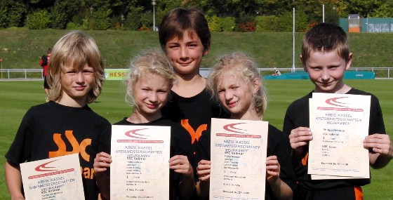 Die oben genannten Guilliana Löwecke, Lea Weiß, Katja Hödl, Hannah Gelhaus und Rebecca Hottenrott bildeten die Vierkampfmannschaft der C-Schülerinnen, die ohne Sharin Oziegbe auf starke 6967 Punkte kam, besser als beim Gewinn der Nordhessenmeisterschaft in Felsberg.