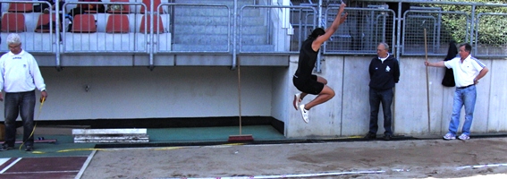 Sven Eichel (MJA) hatte nicht seinen glücklichsten Tag. Als Weitsprung-Zweiter schaffte er 6,35m, allerdings wäre ein knapp übergetretener Versuch etwa 1/2m weiter gewesen. Beim Dreisprung klappte die Technik mit längerem Anlauf noch nicht richtig. Seine Siegesweite betrug 13,38m.
