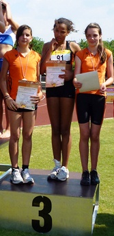 Amy Bembridge (W13) und Katja Hödl (W13)bildeten zusammen mit Sharin die Fünfkampfmannschaft, die mit hervorragenden 7189 Punkten einen neuen Nordhessenrekord aufstellte! Als Drittplatzierte fehlte nur 11 Punkte zur zweitplatzierte Mannschaft der LG Eintracht Frankfurt, und keine 300 Punkte Vorsprung hatten die haushohen Favoritinnen aus Wiesbaden.