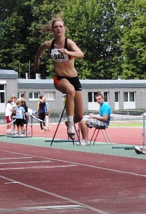Charlotte Bomert (WJA) starte als B-Jugendliche bei der A-Jugend. Sie bestritt den Dreisprung, wurde mit guten 10,65m Vierte. Das konnte man in vorhinein nicht vermuten, das war prima!