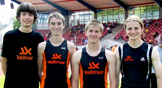 Peter Zink – Nils Stoja – Alexander Hoppe – Christian Klupsch waren die 4-100m Läufer der A-Jugend. In 46.53s wurden die Vier Nordhessenmeister!