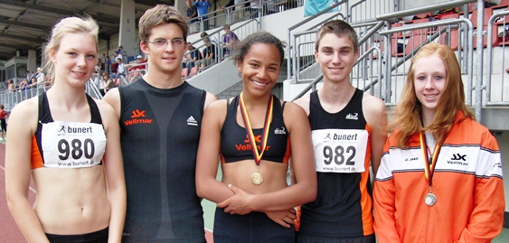 Clara Friedrich W14 ist seit einigen Monaten in unsere Trainingsgruppe und Vereinsmitglied, startet dieses Jahr noch für die LAV Kassel. Im Vierkampf unterlag sie als Zweite mit 1875 Punkten nur um 8 Zähler. Clara lief die 100m in 13.60s, sprang 1,32m hoch und 4,47m weit, und hatte mit 10,20m beim Kugelstoßen ihre stärkste Disziplin.