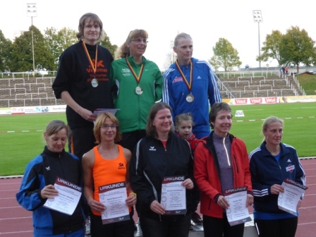 Karin Reitemeier W45 hatte es mit der vereinsinternen Konkurrenz zu tun, 3 Vize-Titel für sie. Hammer mit pB 28.20m/Kugel 7.32m/Diskus 24.35m. Im Speerwurf dann der Titel mit 25.71m.
